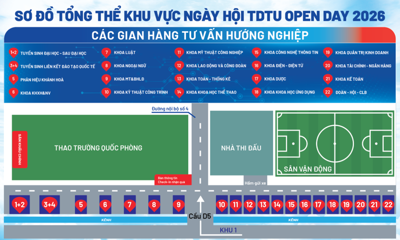 Trường Đại học Tôn Đức Thắng hân hạnh chào đón quý phụ huynh, thầy cô và các bạn học sinh đến với Ngày hội Tư vấn tuyển sinh đại học 2026. Đây là cơ hội để học sinh tiếp cận thông tin tuyển sinh chính xác, tìm hiểu về các ngành học, học bổng và những cơ hội phát triển tại TDTU.